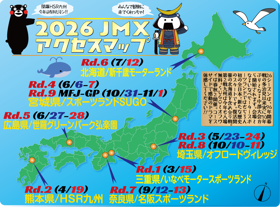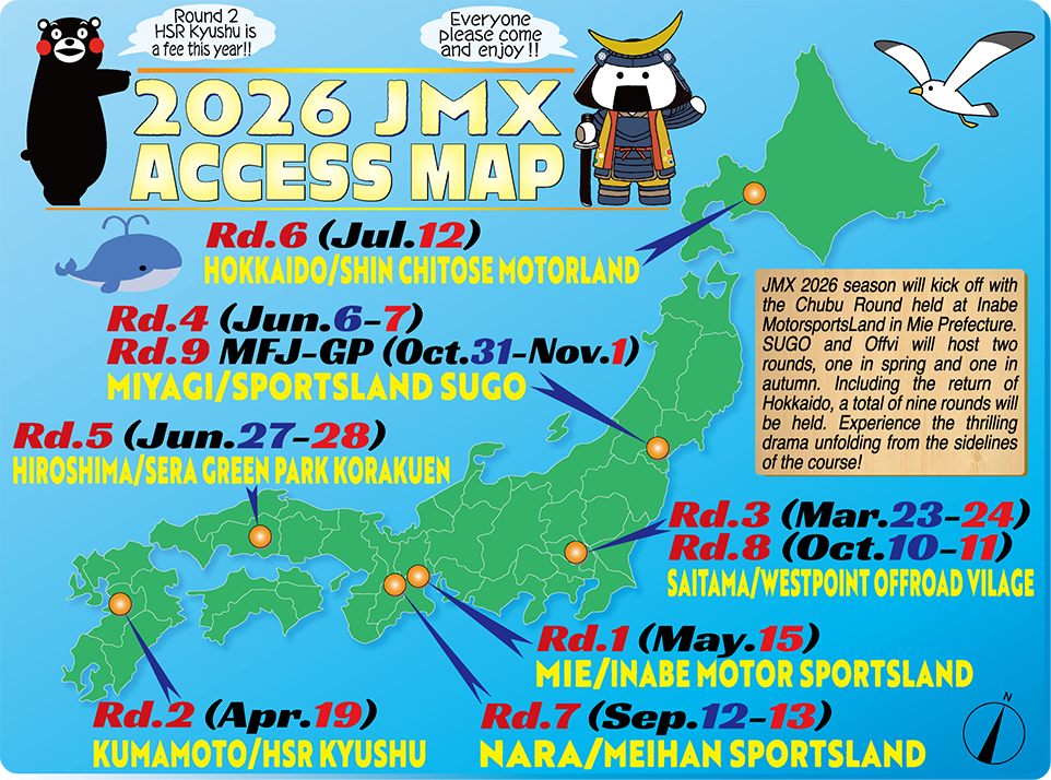 【2026JMXアクセスマップ】 全日本初開催のいなべMSLを皮切りに7会場全9戦での開催!! 全日本モトクロス選手権シリーズ2025カレンダー&アクセスガイド+主要チーム活動計画