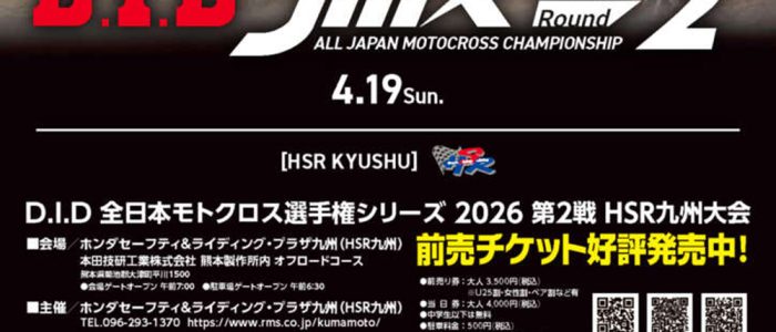 「D.I.D 全日本モトクロス選手権シリーズ 2026 第2戦 HSR九州大会」今シーズンは30年ぶり復活開催となった中部大会でシリーズ戦がスタート。これまで開幕戦の舞台となってきたHSR九州は、第2戦として開催されます …